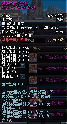 施放[武器祝福]、[荣誉祝福]、[天使祝福]时,有50%的几率使自身减少1%的HP