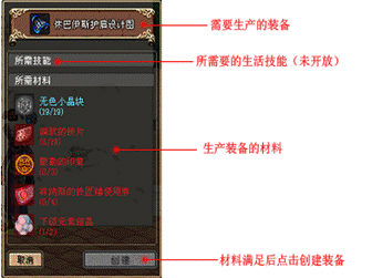 1. 当在游戏中打怪获得“装备设计图”后,可以按照设计图上的需求来收集相应材料,当需要满足时便可以自己生产出设计图上相应的装备而不用通过NPC。